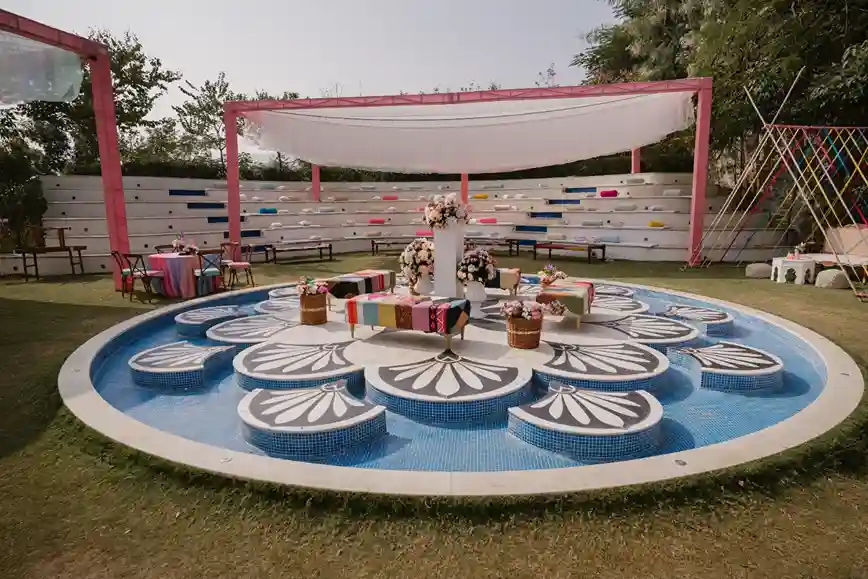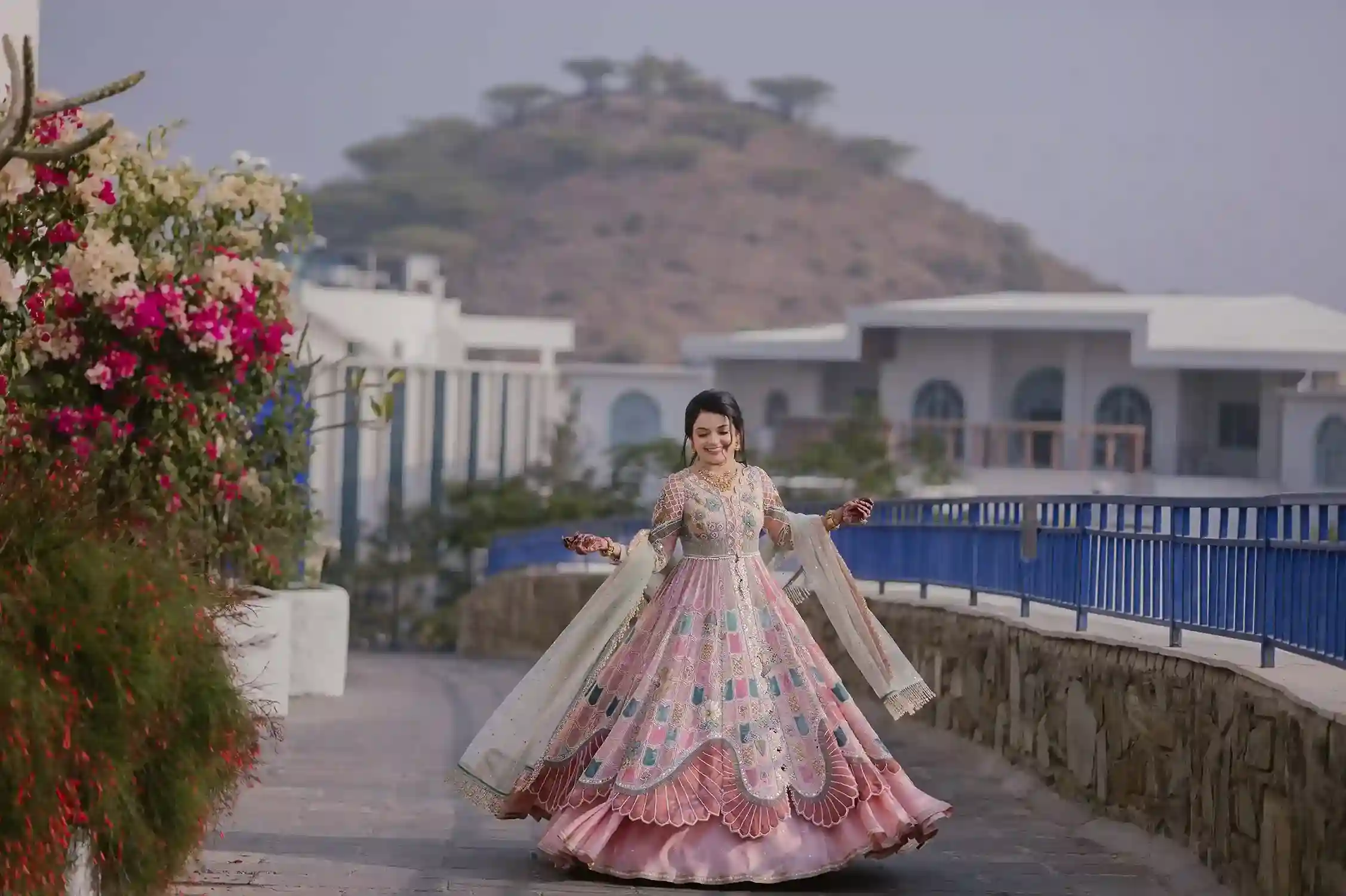 "Royal reflections, lakeside vows—their love is a palace of memories."